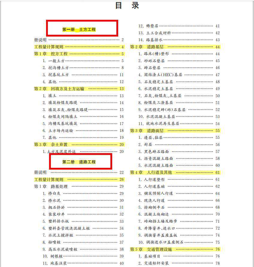 目录(七册)第一册土方工程;第二册道路工程;第三册桥涵工程;第四册隧道工程;