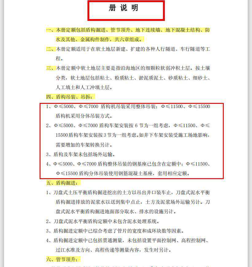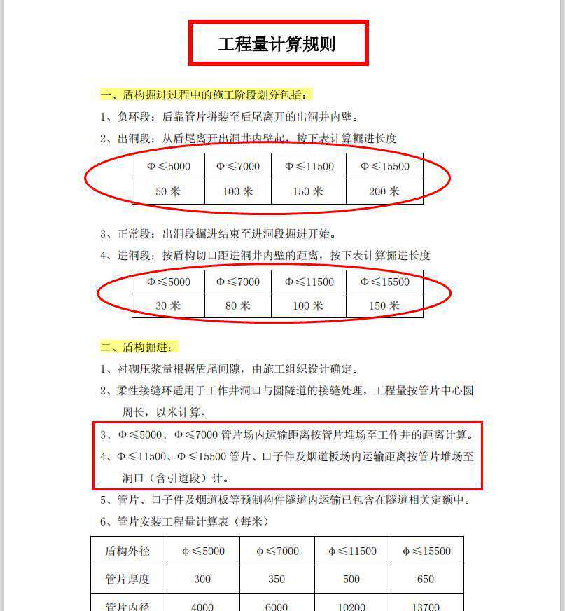 一、盾构掘进;二、管节顶升;三、地下连续墙;四、地下混凝土结构;五、防水及其他;六、金属构件制作
