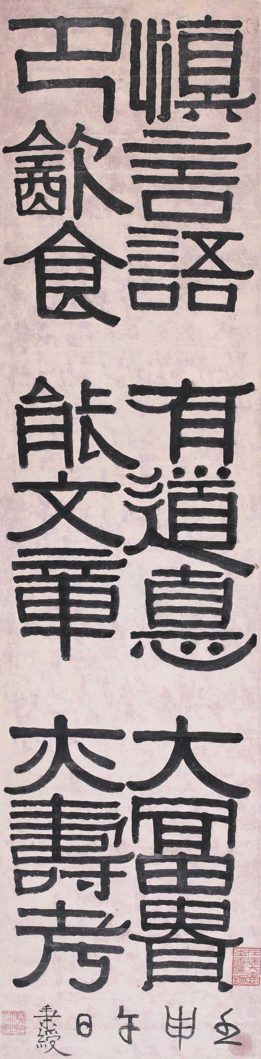 因为师从著名书画篆刻家来楚生、唐云,童衍方的金石书法创作之路起点很高。而受老师的影响,他的创作风格和审美情趣“一开始就不是参照的当代”。他对秦汉古玺及邓石如、吴让之、吴昌硕等名家之刻下过苦功,又吸取了汉砖瓦当、碑版造像、古阙摩崖、金文简牍的精华,作品自然朴茂奔放,气象万千。书坛泰斗沙孟海曾如此点评童衍方的作品:“得然犀室指授,走安吉高浑一路,既有守,亦有为。”