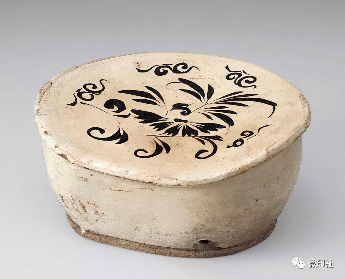 宋磁州窑白釉黑彩花卉纹枕长23.5cm;宽20cm;高11cm