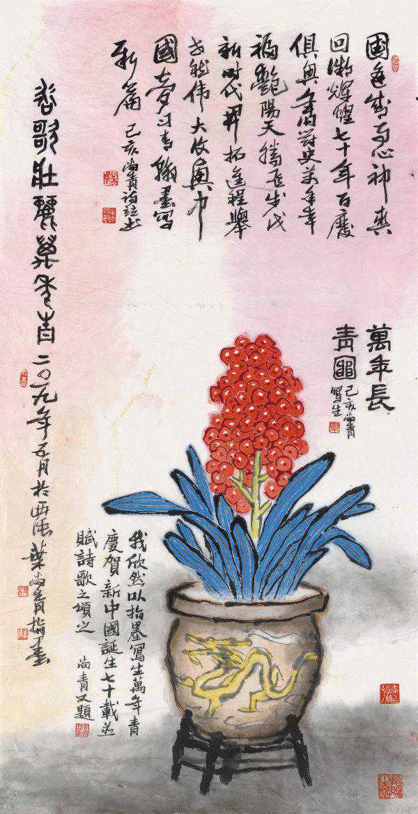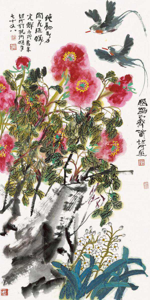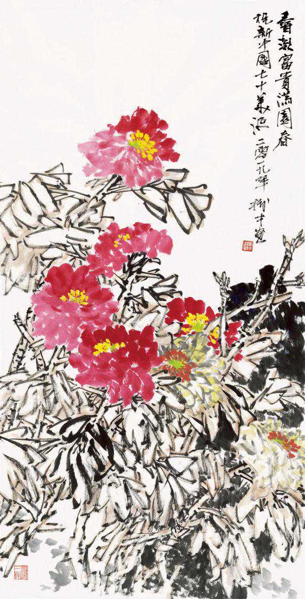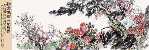 百花齐放春满园,正是伟大祖国欣欣向荣的真实写照,也饱含画家们的美好祝愿,愿伟大祖国繁荣昌盛,走向辉煌。