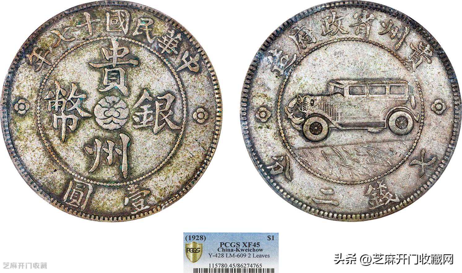 3:贵州省造民国17年壹圆汽车PCGSXF45,估价:RMB900000,成交价格:RMB1840000