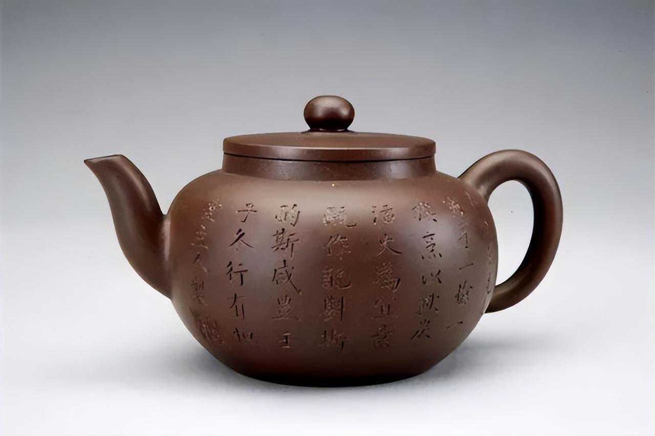 清代嘉庆到光绪年间是紫砂壶造型艺术发展的转化期,此时以壶上镌刻书画为风尚。紫砂壶受陈曼生影响,式样渐趋典雅适古,大多是简单的几何造型,宜于壶面表现书画艺术。