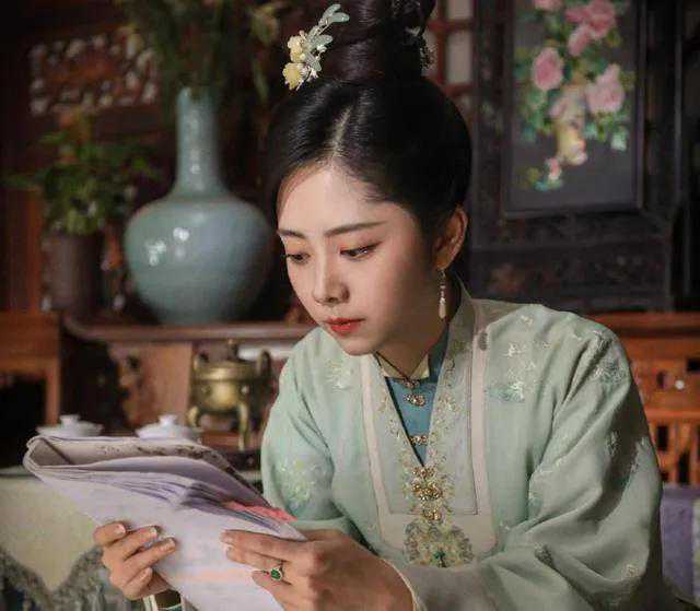 豆绿色介于灰绿色和黄绿色之间,清浅而柔和。用于古装,更能衬得女演员们雅致大气。接下来盘点一下身着豆绿色服饰的女演员。