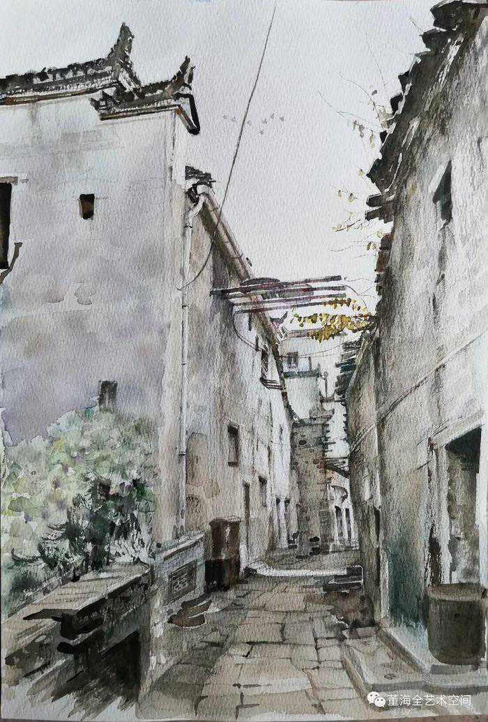 董海全《汪口夕照系列一》水彩画26cmx37cm