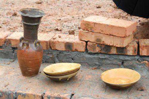 ↑墓室出土的四耳瓶等