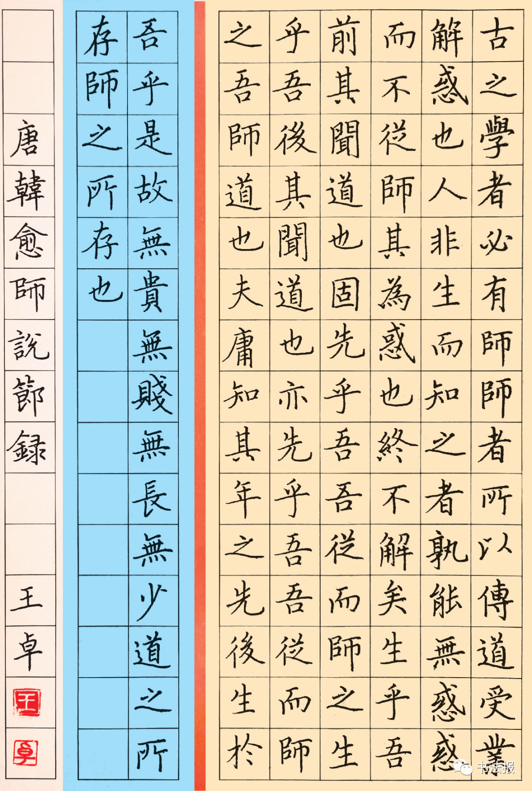 古之学者必有师。师者,所以传道受业解惑也。人非生而知之者,孰能无惑?惑而不从师,其为惑也,终不解矣。生乎吾前,其闻道也固先乎吾,吾从而师之;生乎吾后,其闻道也亦先乎吾,吾从而师之。吾师道也,夫庸知其年之先后生于吾乎?是故无贵无贱,无长无少,道之所存,师之所存也。