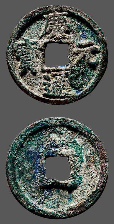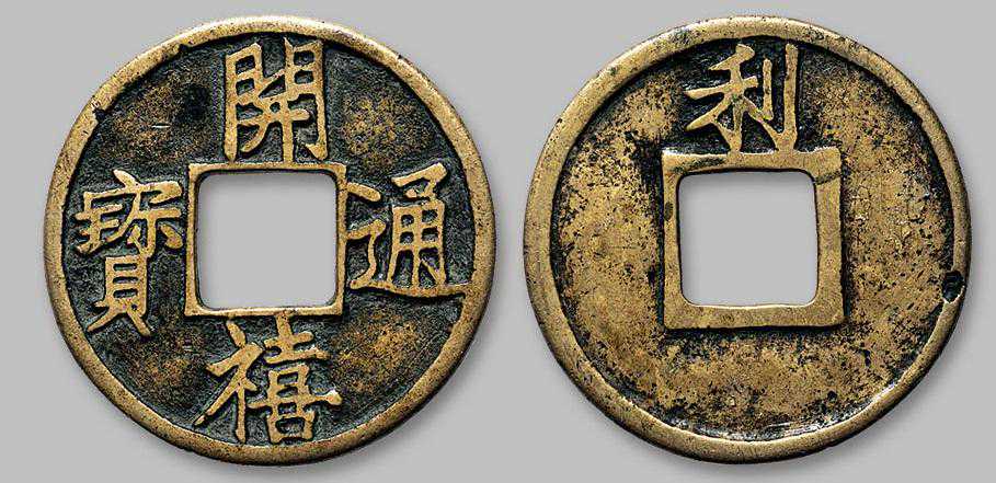 开庆通宝,理宗开庆元年铸,两种,此年号仅用一年,背文记年唯见元字。所以开庆通宝楷书折二背“元”的价格为数十元。
