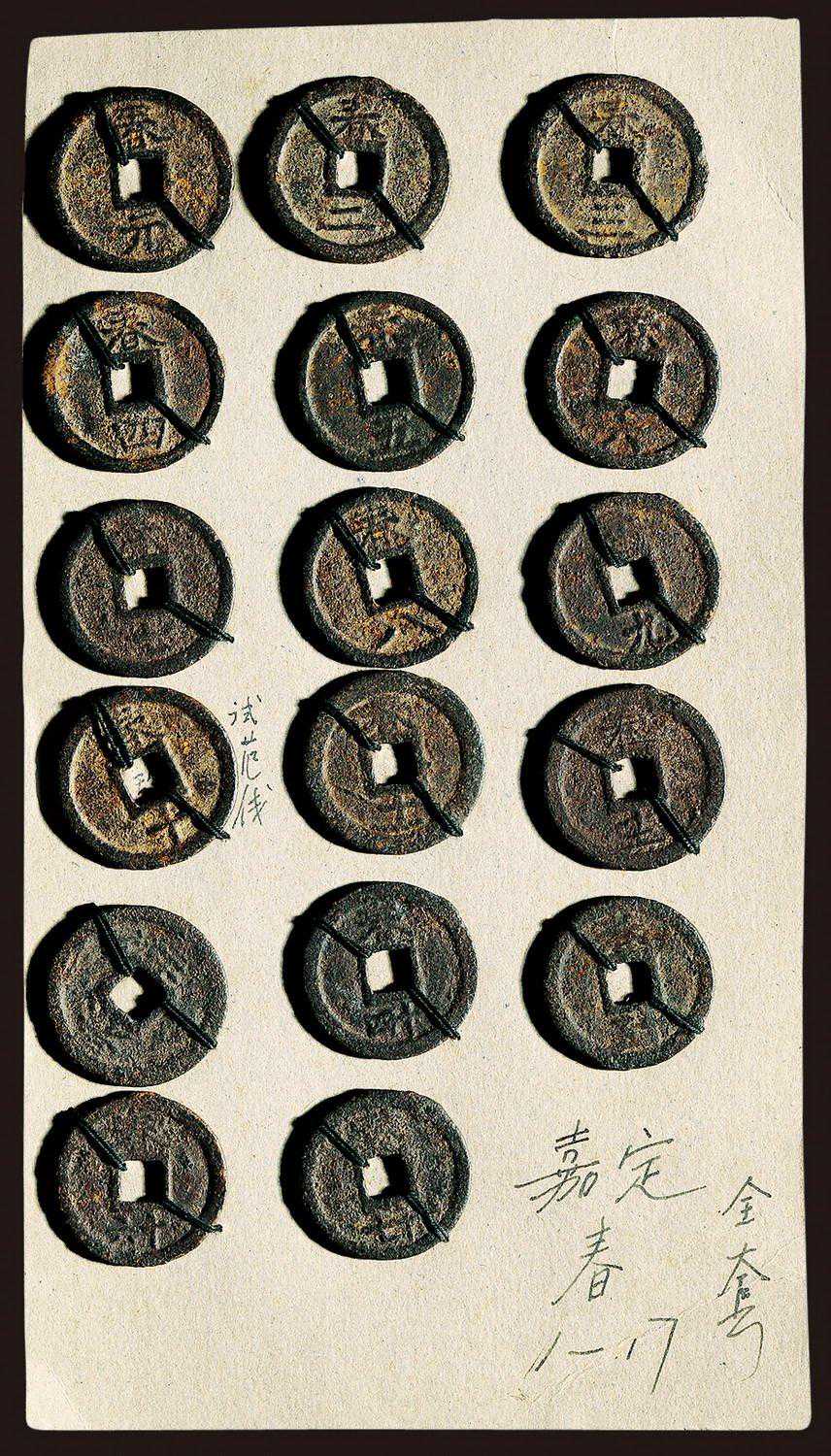 “嘉定通宝”铁钱一组十七枚,嘉德拍卖成交价为1035元。