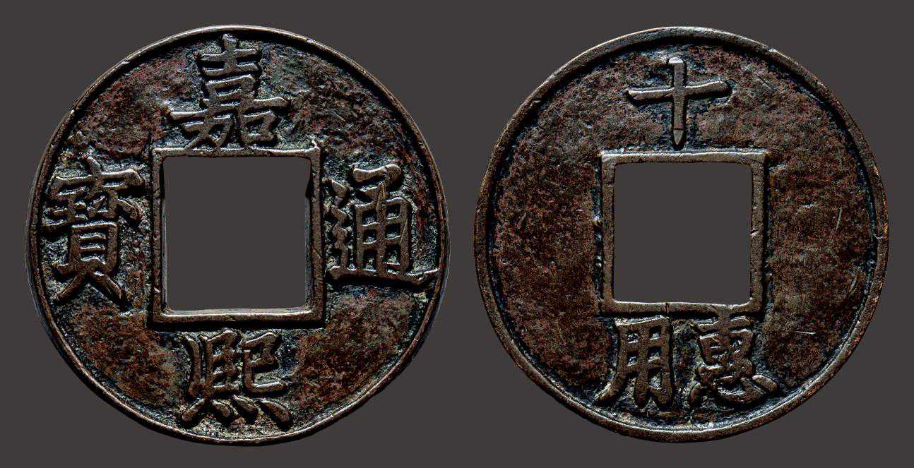 嘉熙通宝,理宗嘉熙元年铸,另有重宝背四出者为罕。一般价格为数十元。.嘉熙通宝楷书小平背“元”、“四”价格为数十元。嘉熙通宝楷书折二背“元”、“三”和嘉熙通宝楷书折二背“四“,价格相当,都为数十元左右。