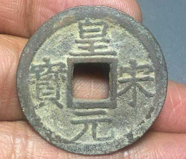 皇宋元宝,理宗宝佑元年铸,因避宝而行用的非年号钱,以光背者罕见。一般的价格为百十元。