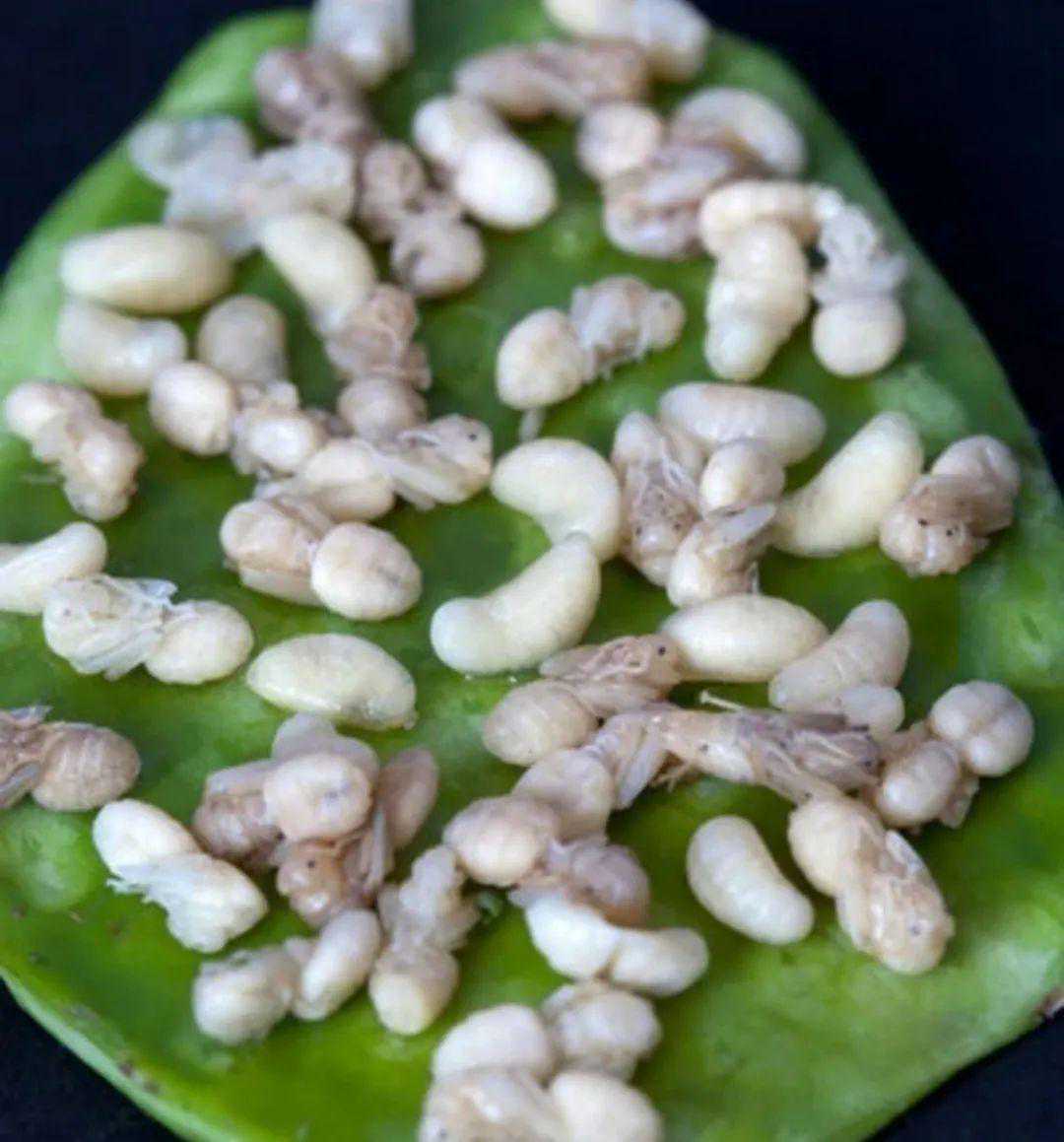 程思:彝斯咖魔有时也被称为昆虫鱼子酱,是墨西哥的一道美食。因原料取自植物上的蚂蚁幼虫。将幼虫油炸后,放在炸玉米饼上便做成了这道墨西哥佳肴。只要您能忽略它们是小虫的事实,这个外形像干软奶酪的菜肴会给您带来美味黄油的味道。