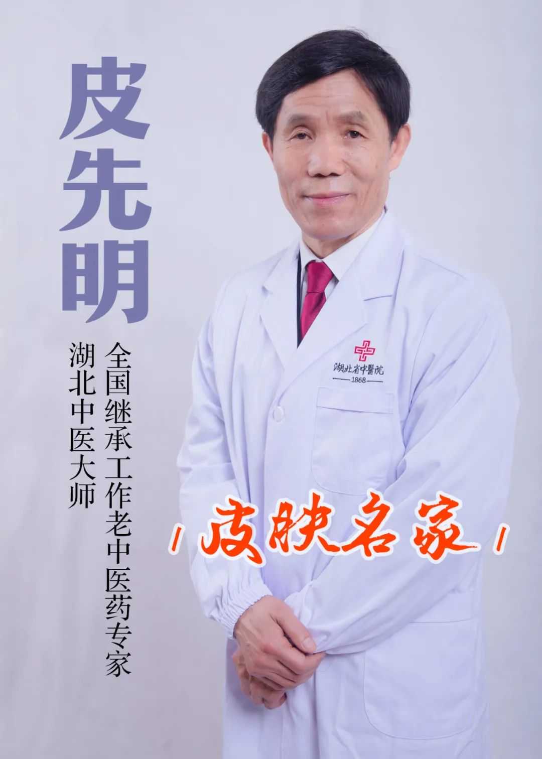 说起中医治皮肤病,很多人第一时间想到的正是“皮肤圣手”皮先明教授,他从事医疗、教学和科研工作40余年,擅长中西医结合治疗湿疹、痤疮、银屑病、荨麻疹、过敏性紫癜、扁平疣、生殖器疱疹等等皮肤病,运用中医外治法治疗带状疱疹后遗神经痛、皮肤溃疡、婴儿湿疹等疾病有独特疗效。