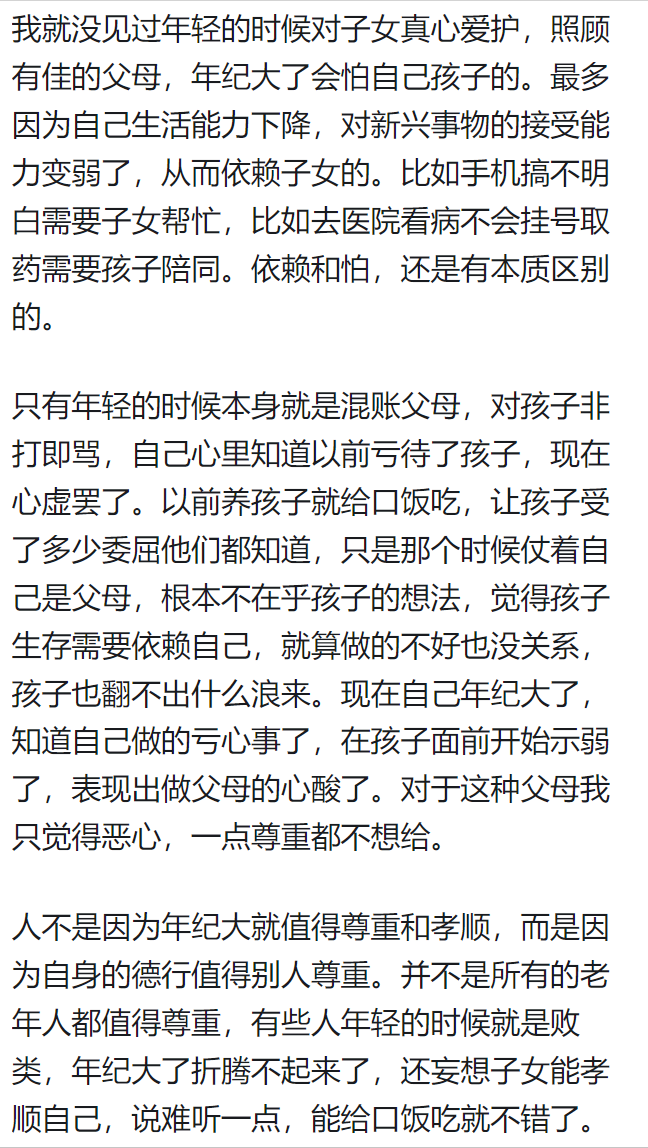 人老了,为什么开始怕子女了?网友的回答真相了!