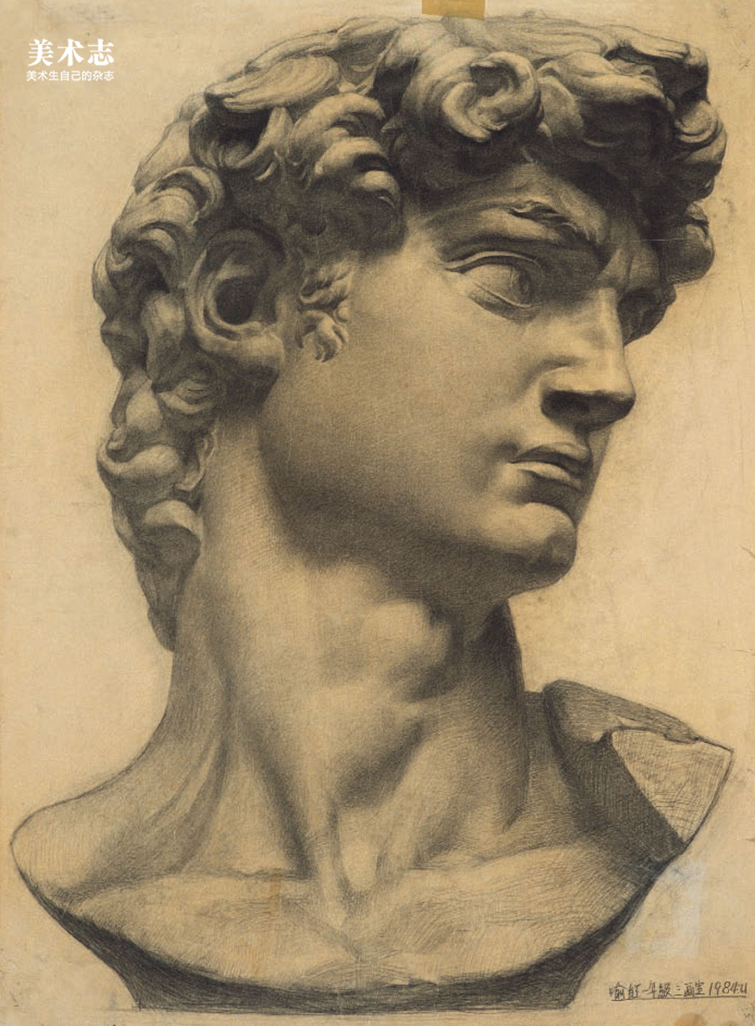 中央美术学院有一幅被誉为“央美最好的大卫素描像”,这幅作品出自央美油画系教师喻红之手,她是在1984年创作了这幅素描作品,并在来年登上了全国美术素描教材的封面。到如今,已经过去37年,这幅素描仍然被公认为是目前为止最好的一张。