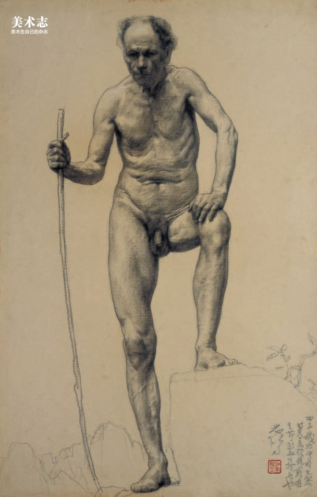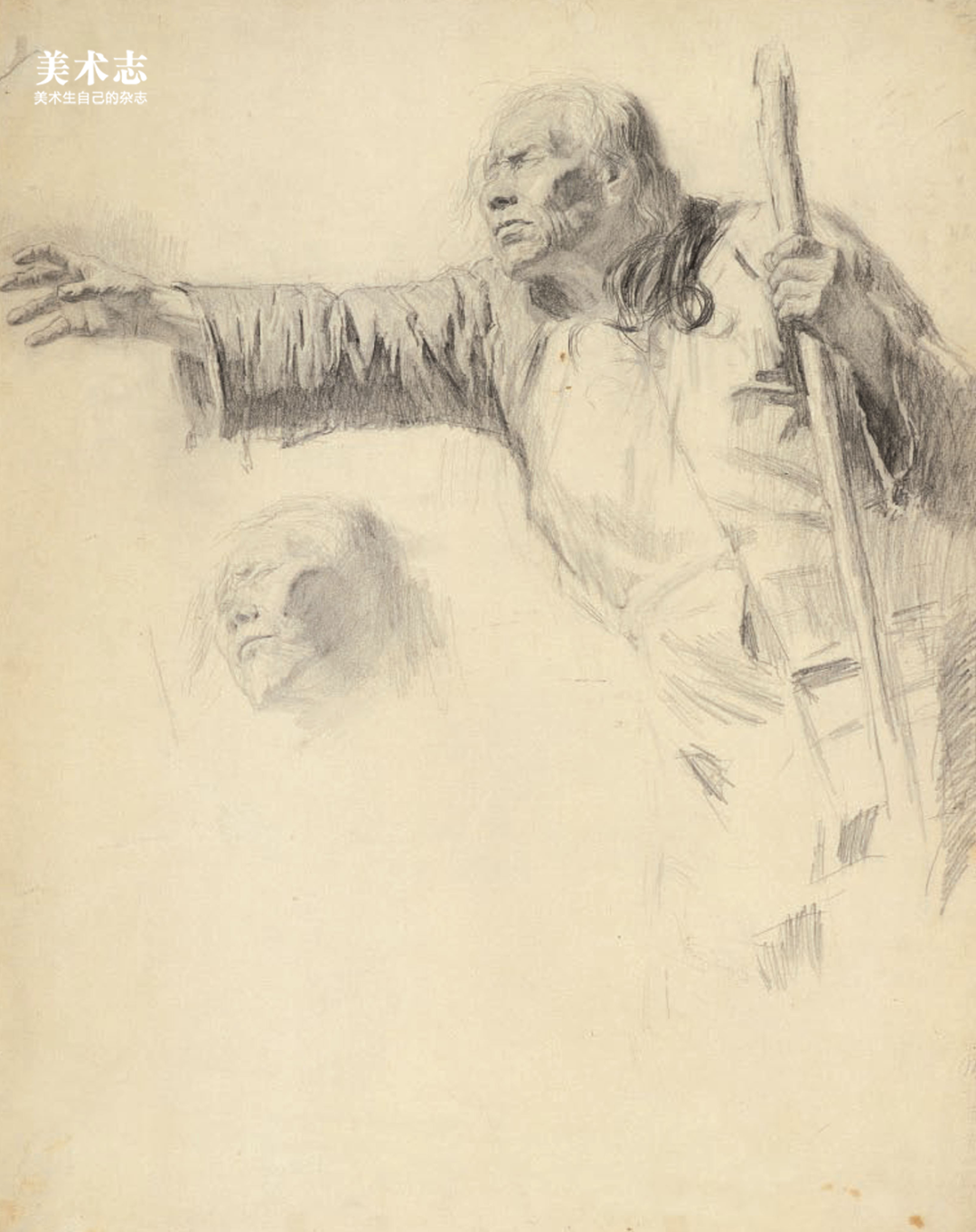 徐悲鸿《拄拐老人》