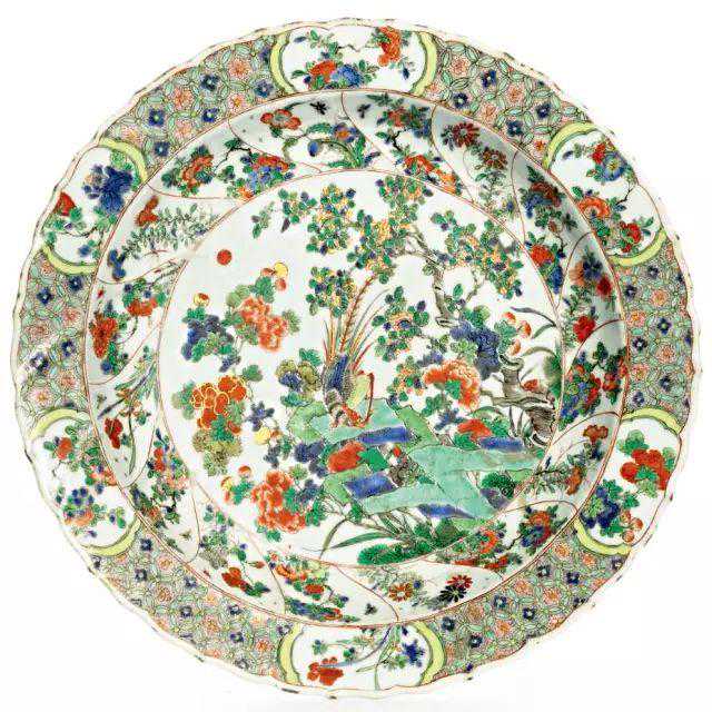 “我对此类作品一见钟情。”小约翰·洛克菲勒用这样一句话表达他对五彩、黑彩及黄彩的釉上珐琅彩瓷的喜爱。他是美国石油大亨老洛克菲勒的独子和主要继承人,他先后以父亲和自己的名义,从事捐款施助的慈善事业。1913年,摩根珍藏的中国陶瓷现身拍场,激发了小洛克菲勒对此类艺术品收藏的兴趣,自此之后,他坚持不懈地追求这类艺术品,并潜心研究相关的课题,为他之后的收藏建立了自己的准则。1960年,小约翰·洛克菲勒去世,他遗赠给大都会艺术博物馆的藏品中就有不少精美的中国瓷器,比如清康熙五彩开光鸟兽博古图大棒槌瓶、清康熙五彩花篮图大盘,均为难得一见的珍品。
