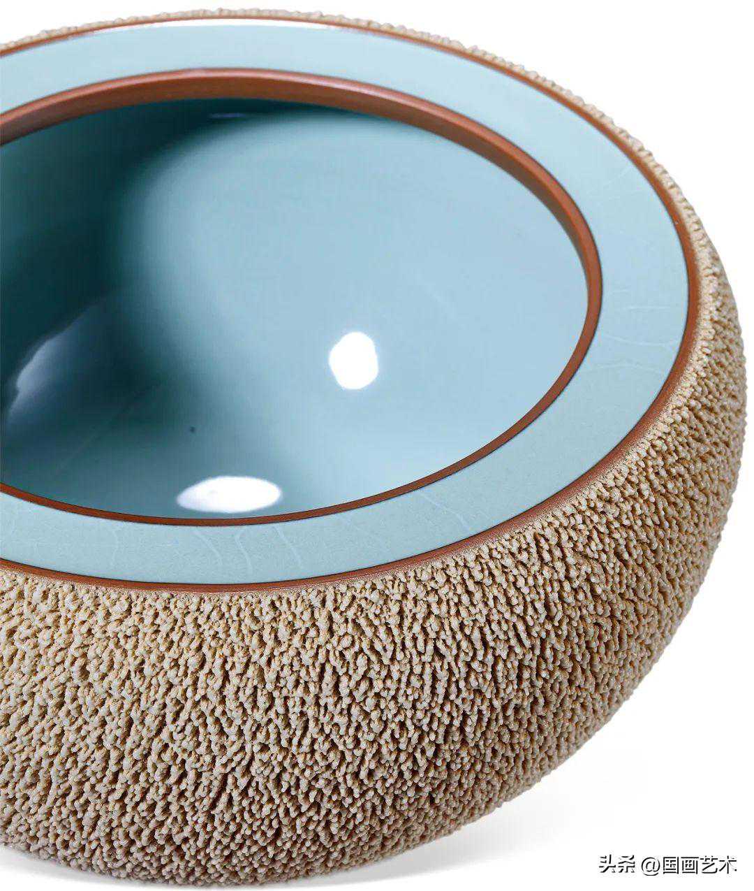 器物内面的天青色,就像万里晴空,外面那层土黄色的釉面又如广阔的大地,二者合为一体,呈现出传统与现代的共和,又是钧瓷艺术发展的一个必然,引人感悟、玄想……