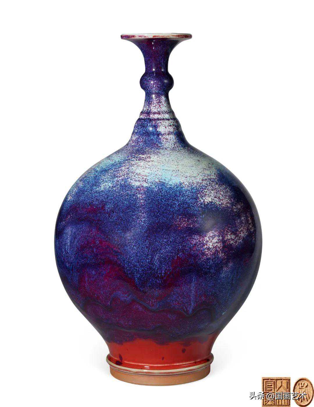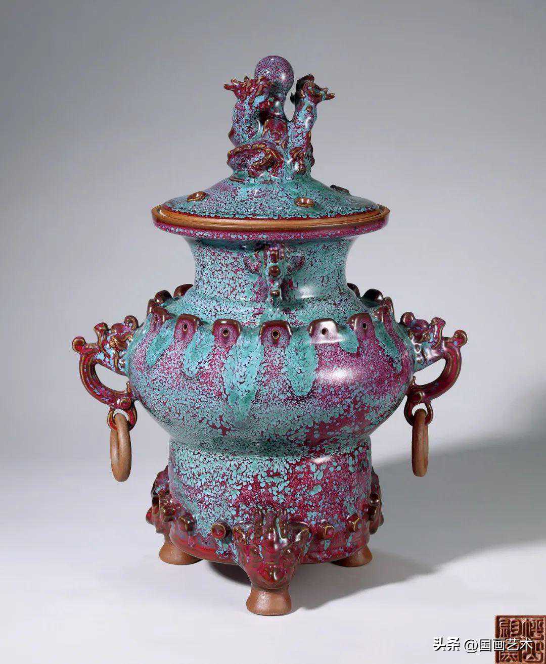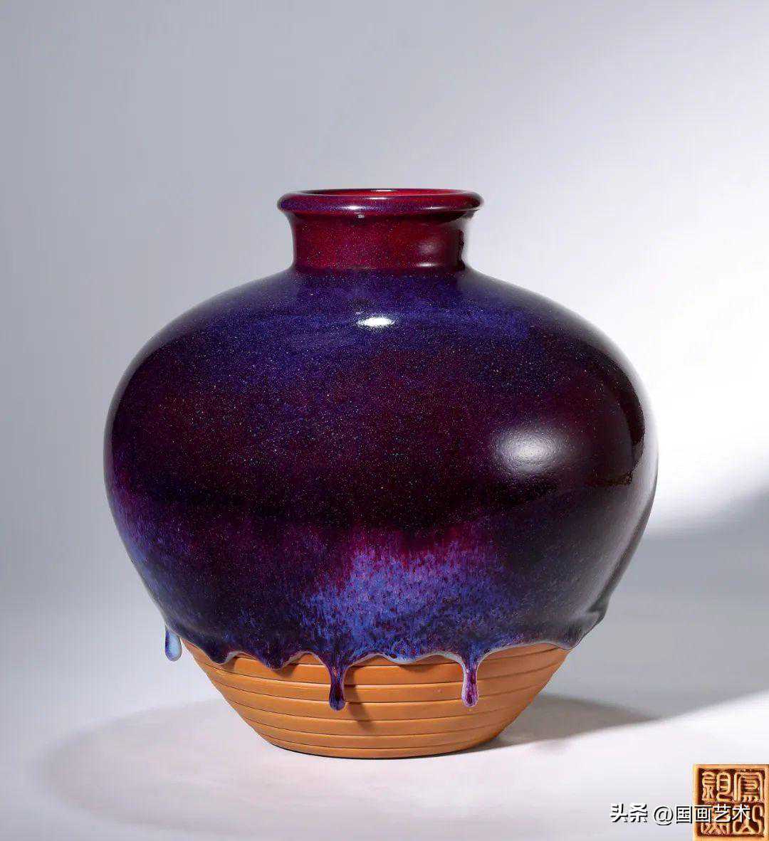 柴窑烧制。钧瓷的灵魂是窑变,神在变化,奇在纹路,妙在开片,绝在景观天观。钧瓷的四神奇妙绝集中到这件作品上。