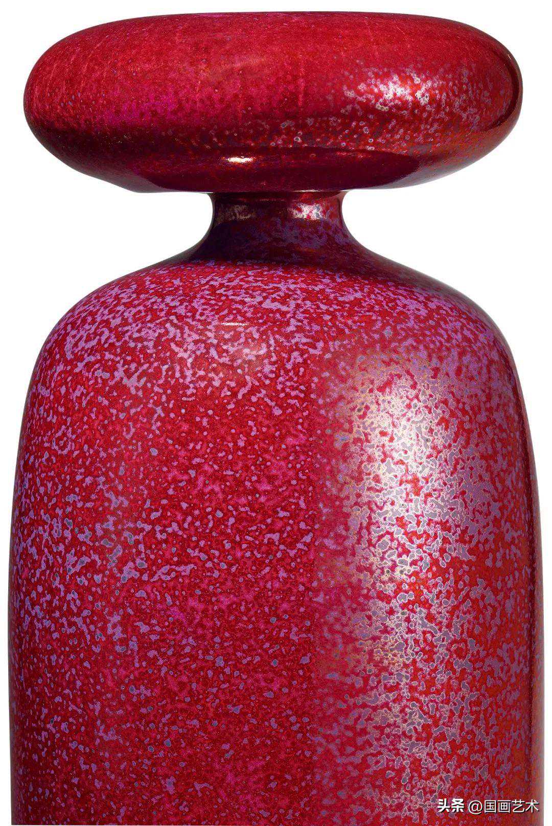 小口细颈,颈部如含苞待放的花骨朵,球形瓶腹雍容大气,整体意为花开富贵,幸福美满。大寒是一年最冷的时节,釉色幽暗,一派天寒地冻景象,冷到极点就会迎来万物复苏,一抹红色温暖如春。