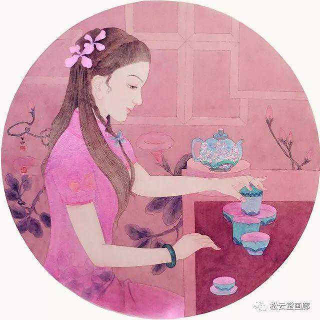作品尹伊《茶》系列之《静夜香茗图》50x50cm