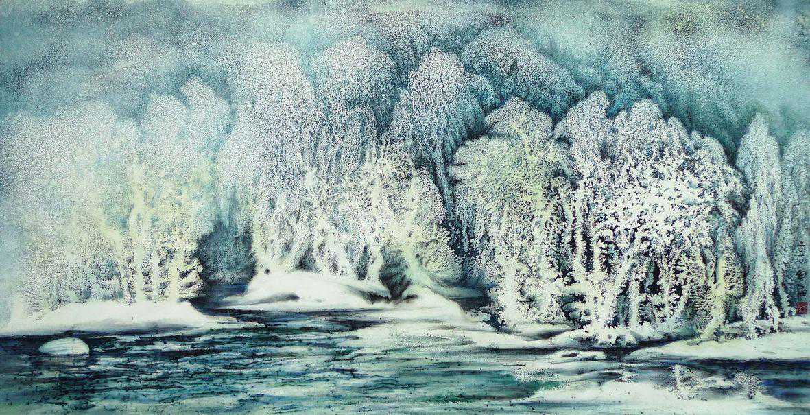 但是纵观历代雪景画中,并没有表现冬季雾凇的作品,于是便启发了白海想要填补国画雾凇领域的空白。