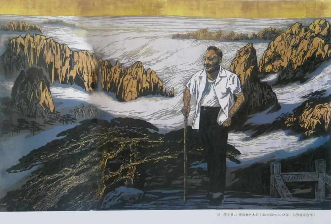 绝版木刻版画《邓小平上黄山》