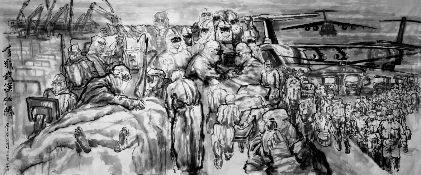 抗疫情水墨宣传画