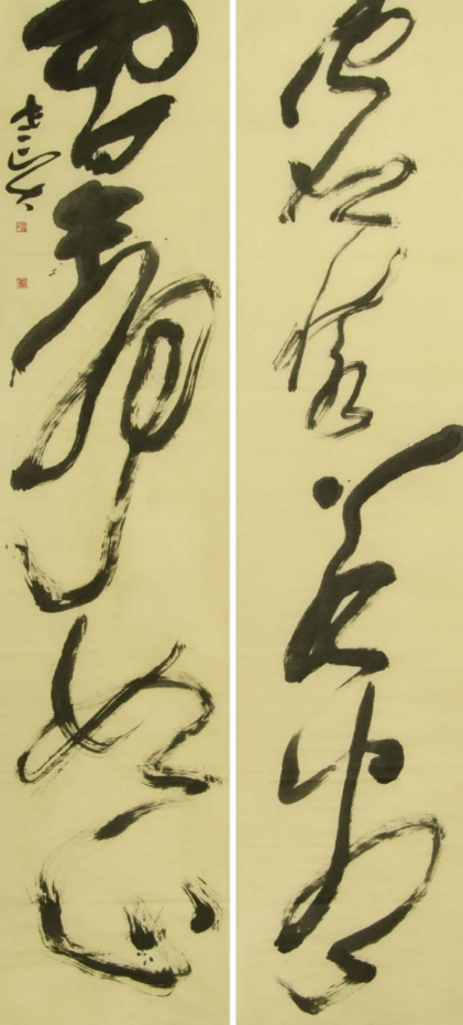 细观传贤的草书,就似狂飙曲表现出来的急风骤雨般的韵律,每一个字都是铁心钢骨,由力度很强而跳动幅度较大的线条构成,他有时将上下几个字联绵贯书,有时又将一字分成左右两部分,以意相联。而字与字之间,行与行之间布置得相当茂密,如风雨密集而骤至,如海潮连翩而涌来。他的草书韵律是急促、繁富、跃宕的,而不是那种舒缓、简约轻快的旋律。