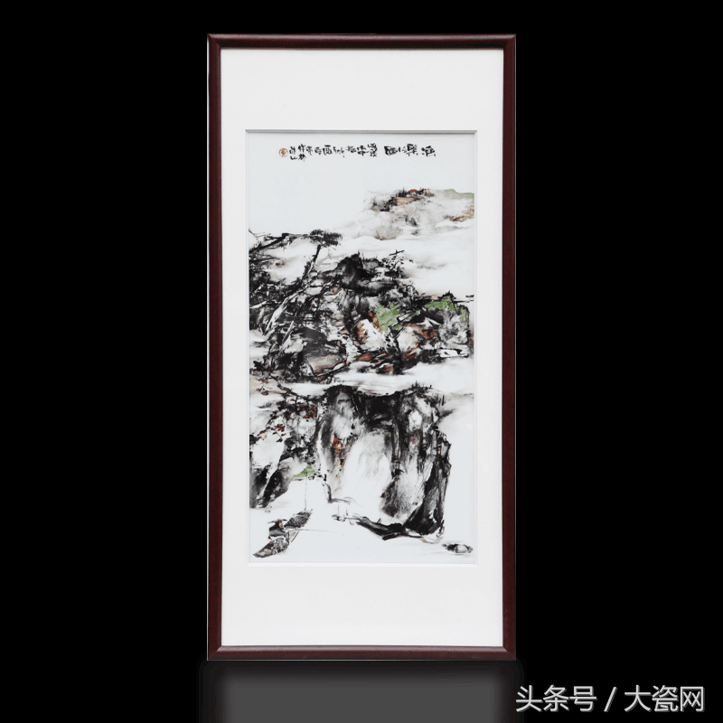 此作品为釉上彩山水瓷板《渔乐图》,作品采用通景构图法,远景山峦起伏,白云缭绕,山石皴擦有序,山石延伸出几枝梅花,与作品中的“乐”遥相呼应,一老人穿着蓑衣独自垂钓于江面,颇有一股旷世独立,悠然自得的意境,颇具风趣。