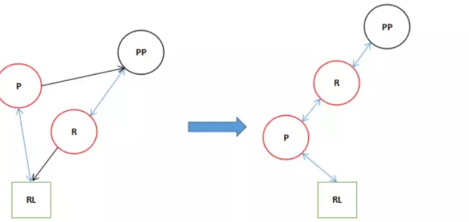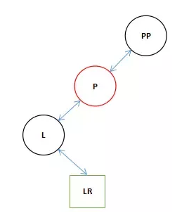 因为我们传进来的是XPP,所以结合上一次的向左旋转我们在向右旋转的时候看到全图应该是这个样子的。(注:XPPP可能是XPP的左父节点也可能是右父节点这里不影响,而且可以是任意颜色)