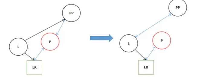 我们已知xp是xpp的左节点,首先判断了x是xp的左节点还是右节点,如果是右节点的话构成了下面的结构。
