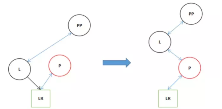4.这里我们认为LR是存在的,其实这个不影响主要的旋转,为空就指向null呗,直接执行完9和10行。