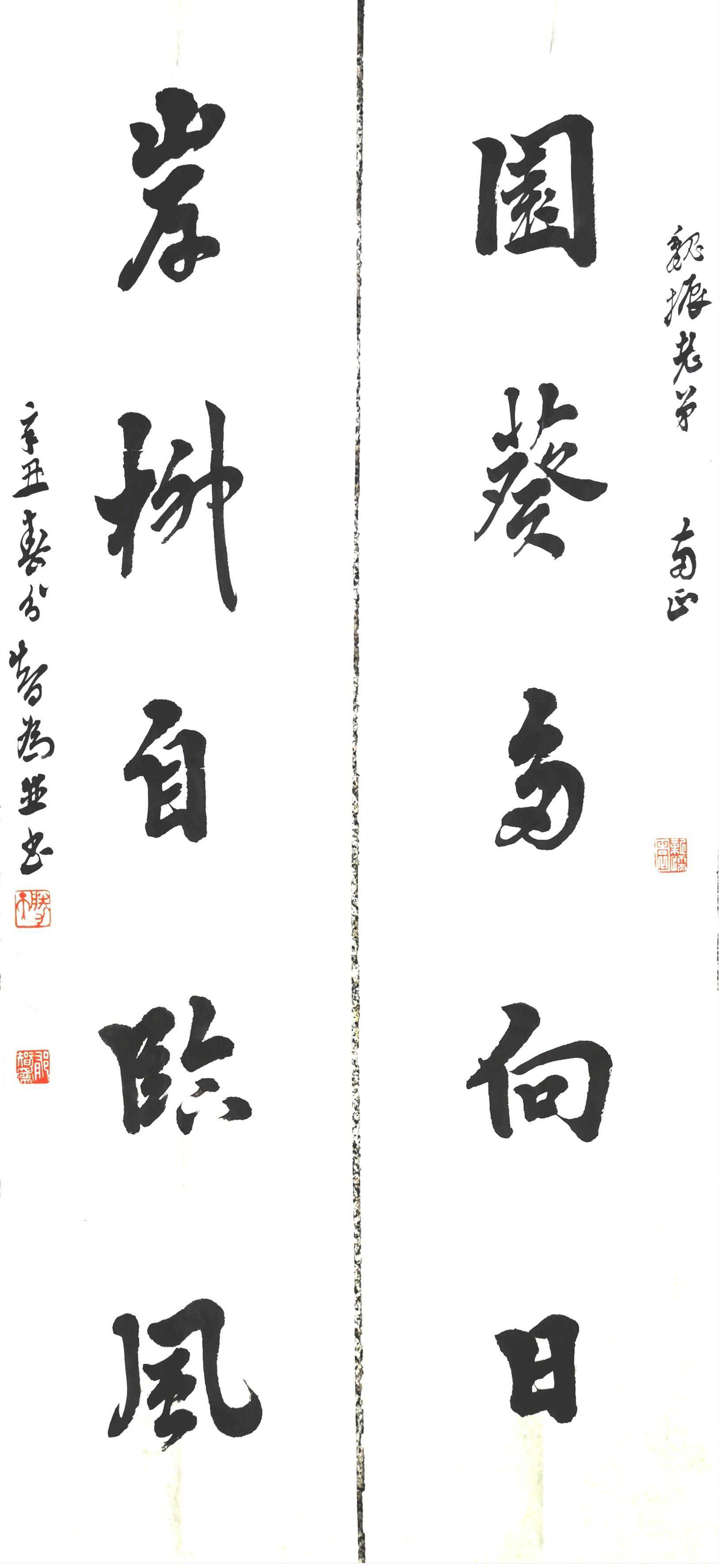 因此,胜天力求诗与书的相融,他以诗文作为书法的创作动力、风格依据和意境拓展,亦即好的诗词、联赋能激起书法创作的冲动,而合适的书法风格又能把诗词联赋演绎得更趋完美。在他的心目中,能被加上“诗一般的”四字桂冠,才是美好的书法作品。胜天的诗文创作实践丰富,书法四体皆能,书路亦宽,故能因诗作书,随势变化,得心应手。