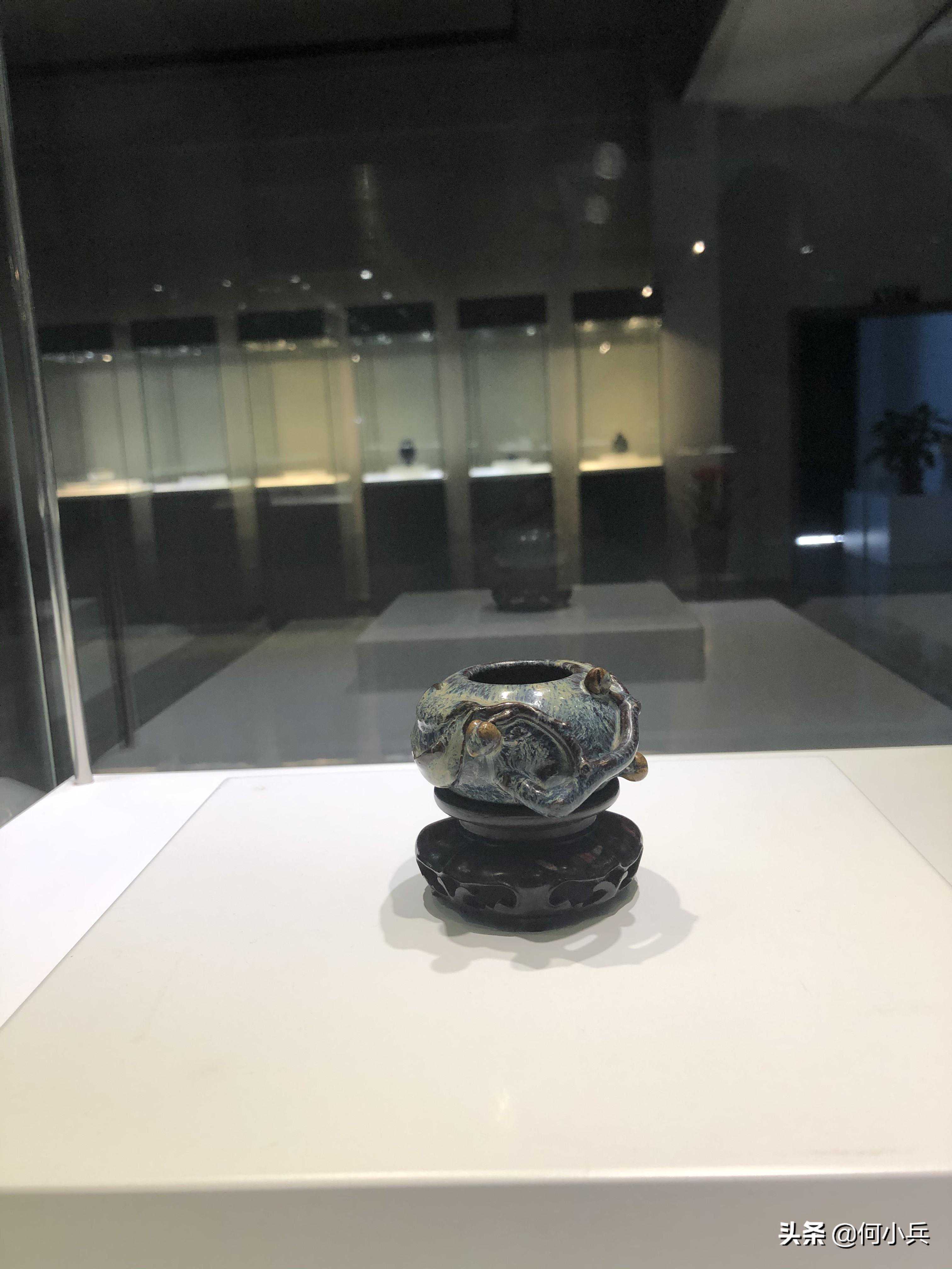 据殷时君介绍,宜钧釉紫砂器是宜兴紫砂器中的一朵奇葩,始创于明万历中期,由制壶名家欧之明创烧,以白泥或紫泥为胎,并施以仿钧窑的乳浊釉,因釉面与宋代钧窑乳浊釉相似,所以称为“宜均”。宜兴均釉陶器由于釉汁掩盖了紫砂固有的天然肌理和质朴古雅的艺术本色,加之工艺要求复杂,制作成本高,在明末清初风行,是宜兴紫砂文化史上不可或缺的一页。两种陶器虽然一个施釉、一个无釉。但坯体相同,制作工艺同源。当年,时大彬,做过宜均文玩笔洗、水滴等器物,陈鸣远制作的文玩“桃洗”,落款在釉色内。有一款天青色香炉,炉体上刻有“坐我以灵室,炉中上篆香”,其装饰手法,与紫砂茶壶刻款有异曲同工之妙。