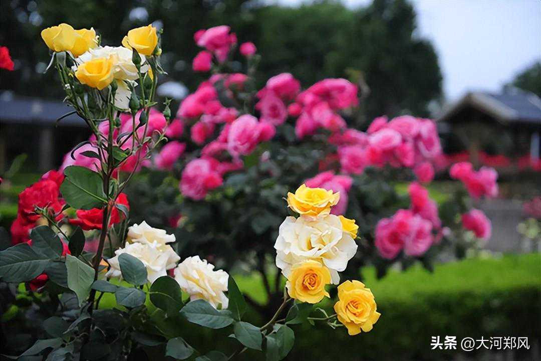 自由而浪漫的蔷薇也盛放了,七姊妹蔷薇,常7-10朵簇生在一起,如同姊妹嬉戏打闹,重瓣的粉花立于墙头,像是好奇的少女打量着墙外的风景。洁白如谦谦君子般的白玉堂,潇洒飘逸,暗自生香。粉团蔷薇,藤蔓缠绕,交织攀缘,在栅栏篱笆上,撑起一簇簇“花伞”。每一面花墙,都在织就独属于自己的锦绣画卷。