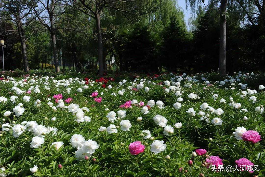 千姿百态的芍药花,花姿绰约,华贵雍容。复色的奇花露霜,花型别致,大而平展;金簪刺玉内瓣浅黄呈簪状,端部似剪绒,毛茸茸的饱满模样可爱极了;莲台芍药花型端庄,形似莲台。漫步湖边小道,抬眼望去,花大色艳,柔美芬芳,草木的茎干带着温润的质感,风吹过时,更见娇柔。