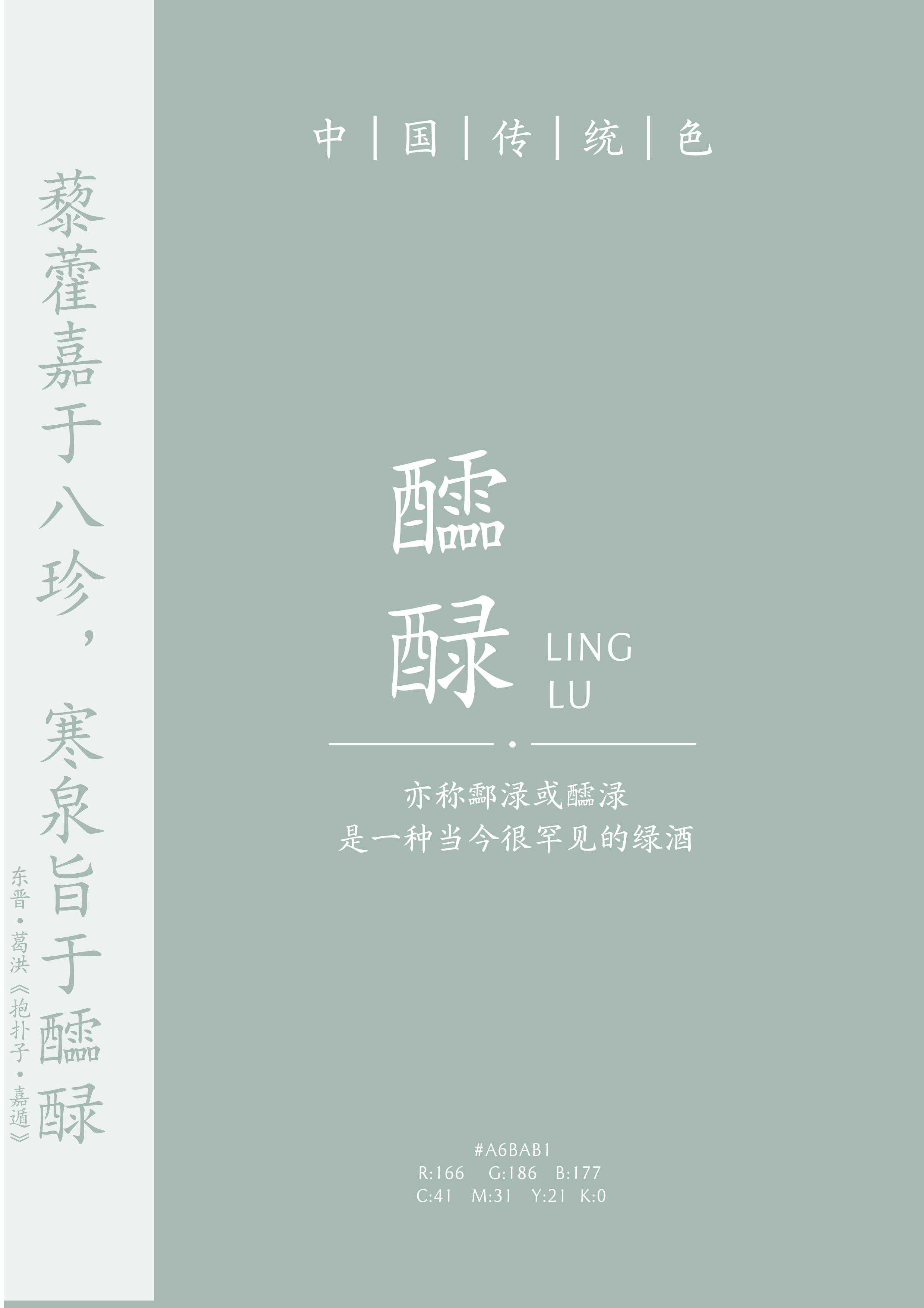 “藜藿嘉于八珍,寒泉旨于醽醁。”(《抱扑子·嘉遁》)醽醁(línglù),亦称酃渌或醽渌,是一种当今很罕见的绿酒。明代医学家李时珍《本草纲目·酒》有解释:“酒,红曰(堤)(ti体),绿曰(酃)(ling零),白曰(磋)。”