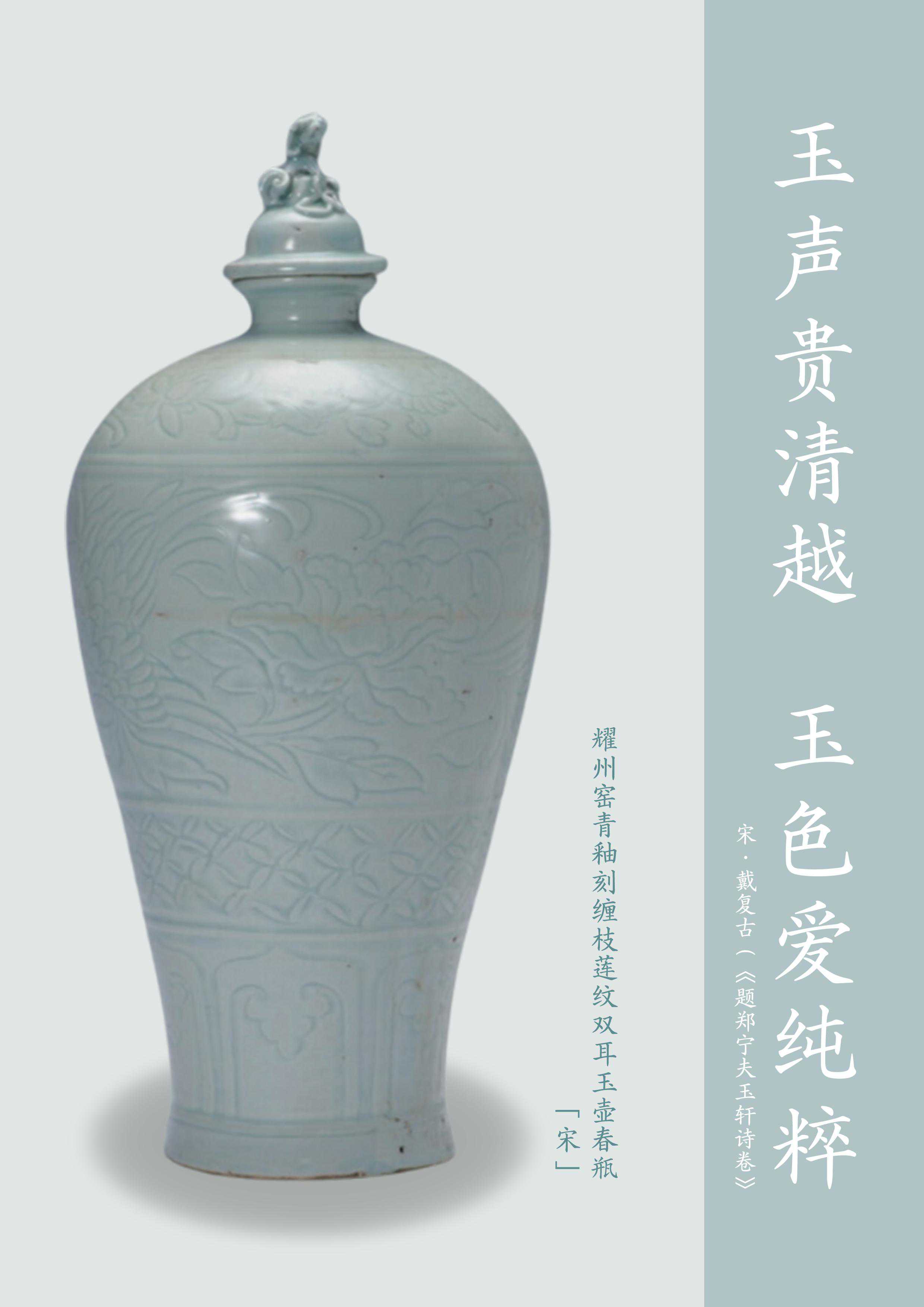 “青如天,明如镜,薄如纸,声如磬”。影青,是人们对宋代景德镇烧制的具有独特风格的瓷器的俗称,釉色介于青白之间,青中带白、白中闪青,加之瓷胎极薄,所刻花纹迎光照之内外皆可映见,因此被称为“影青”。影青瓷造型有韵味美,装饰技艺更是独步青云。影青,色淡优雅、晶莹如玉,历史上有“假玉器”美称。