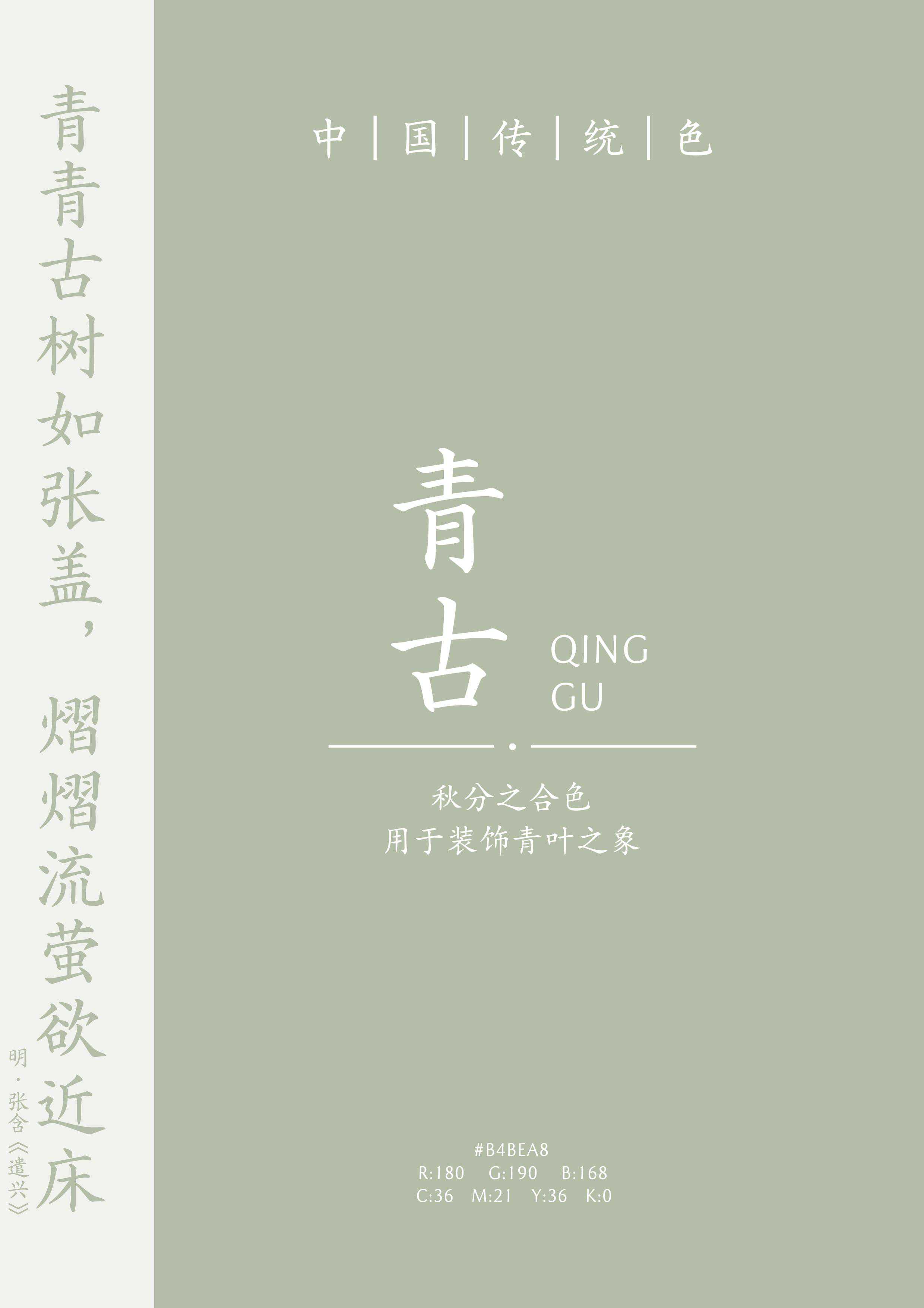 “桑眼初开麦正青,勃姑声里雨冥冥。”(宋·陆游《春社》)正青,即纯青。陆游《老学庵笔记》卷四中的“麦苗稻穗之秒,往往出火,色正青”就是形容此色。