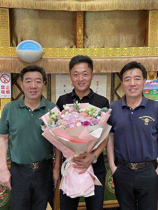 著名演员刘全和刘全利与红木鉴定专家何哲到场祝贺并合影