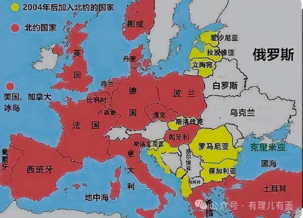 成立于1949年的北约,是为了遏制苏联与华约,维护漂亮国在欧洲的主导地位。最初只有美国、加拿大、英国、法国等12个成员国,从1952年到2023年经过9次扩张,如今已经发展成为有32个国家参加的世界上最大的军事集团。