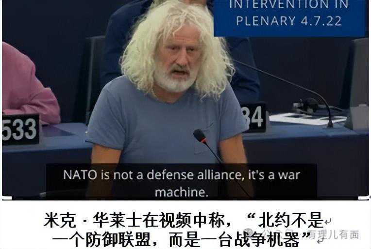 2022年7月10日,欧洲议会议员米克·华莱士在一次议会会议上,斥责北约不是一个防御联盟,而是一台会行走的“战争机器”,北约的真正目的是捍卫美国霸权。