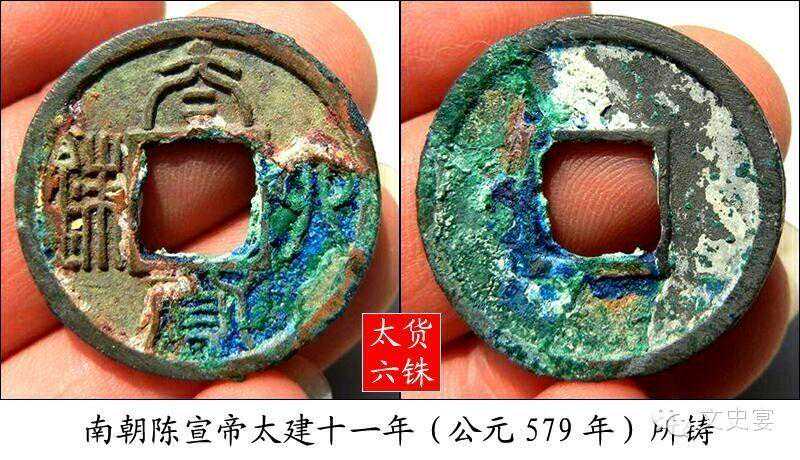 南陈时期,陈宣帝陈顼为解决国库空虚,铸造太货六铢,一枚新钱可以换十枚旧钱。太货六铢非常精美,玉箸篆体匀称健美,舒展有力,面、背内外廓精整挺拔,制作精良。但是地方豪强也铸造品质很差的假币,和朝廷争利搞的民间的百姓叫苦,最后陈宣帝只能一枚新换一枚旧钱解决问题。