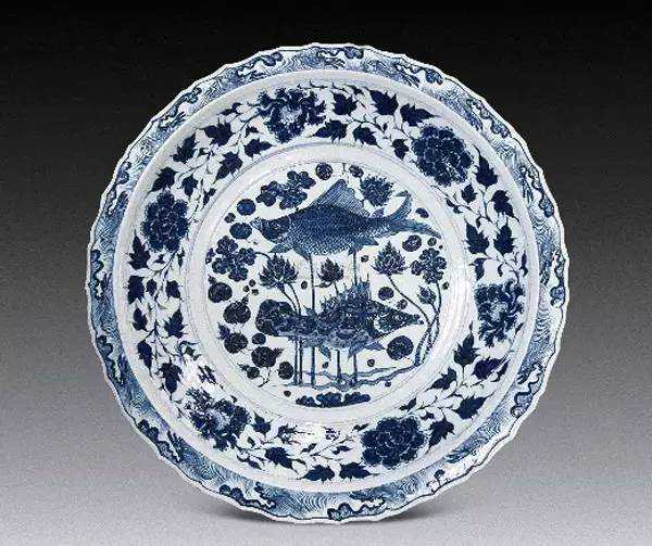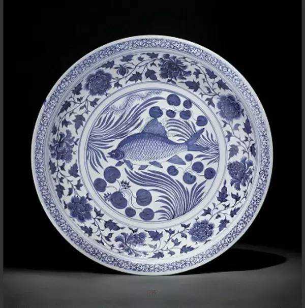 元代青花鱼藻纹花口盘拍卖成交价:1035万港元
