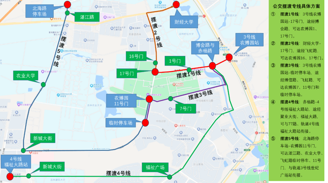 摆渡1号线:3号线农博园站-17号门,途经博会路,可达农博园1、17号门。