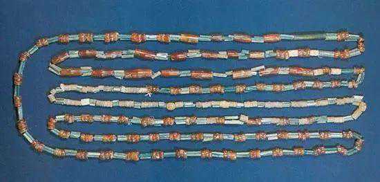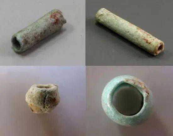 宝鸡弓鱼国西周墓地出土串饰,其中灰蓝、灰绿色料管即釉砂制品