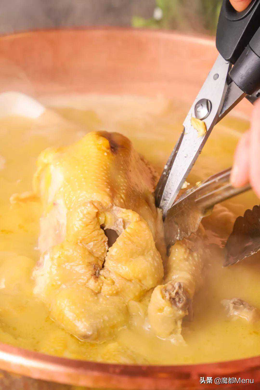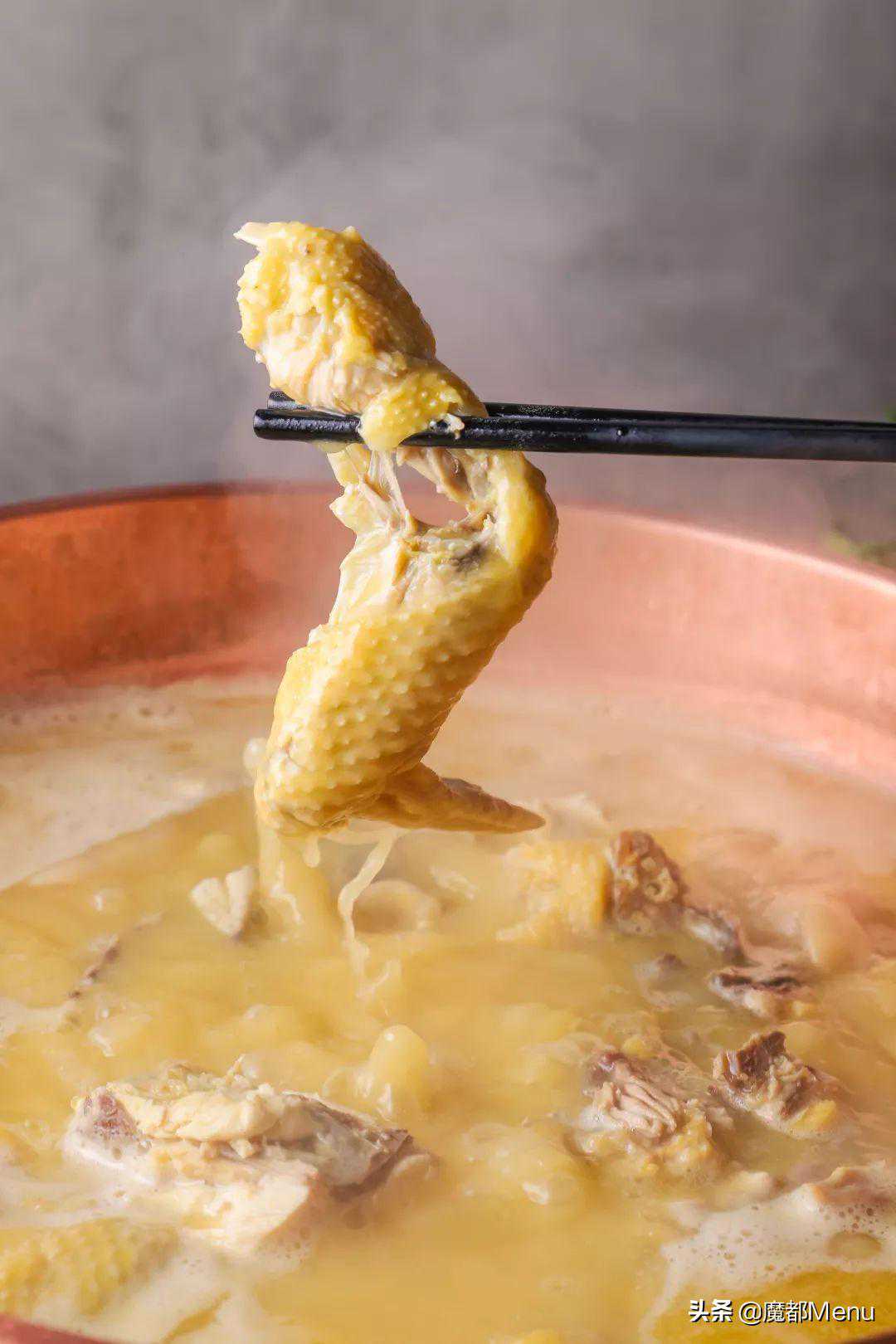 锅里的走地鸡也要好好品尝,煮得再久肉质也不显老,筷子轻轻一夹就能骨肉分离,非常酥嫩,而且收尽汤底的鲜味后,吃起来更带感。
