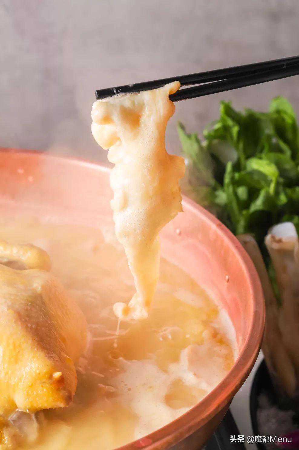 鲜入围煮的花胶鸡汤锅底,选用了来自广东的玉米走地鸡,经过长时间精心的熬煮,才成就了这锅呈现金黄色的汤底,鲜美的味道绝对不是调味料所能替代的,所以答应我,上来第一件事,一定要喝汤,这个时候最原汁原味!