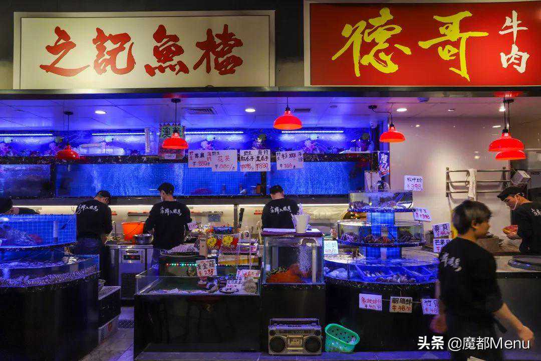 一边是敞亮的大厅,另外一边则是一个“农贸菜市场”,浓浓的港味,就好像走在市井街头一样,海鲜、蔬菜、肉类,看中哪样直接打包上桌!